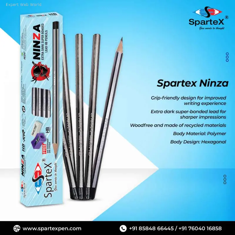 Spartex Ninza polymer pencils feature an extra dark super-bonded graphite core for bold impressions on paper and an ergonomic body for a comfortable grip.